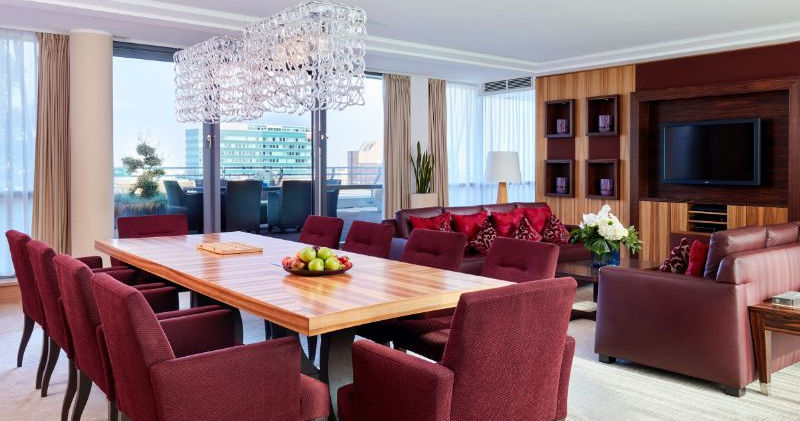Our luxurious Hommage Signature Suite comes complete with its own roof terrace, offering up a picturesque view of Königsallee. You won’t be short on space here, with the suite boasting huge separate living and sleeping areas and covering 160 square metres in total. In our Hommage Signature Suite the walls are clad in zebrano wood and the parquet flooring is made from American walnut, adding a touch of elegance and class to this exquisite space. A special table in high-end wood can be found in the dining area, making it the perfect place for an intimate dinner. The latest in television technology and a comfy super king size bed await in the bedroom.