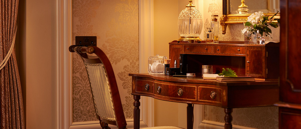 The luxurious W.B Yeats Suite offers a magnificent 165 square meters/1776 square feet with residential style living space luxuriously decorated throughout with silk wall coverings and bespoke furniture. Perfect for entertaining or for conducting business. This magnificent suite can be a one bedroom or two bedroom suite. Three balconies offer views on to our Inner Courtyard and overlooking the exclusive, leafy Ballsbridge neighbourhood.